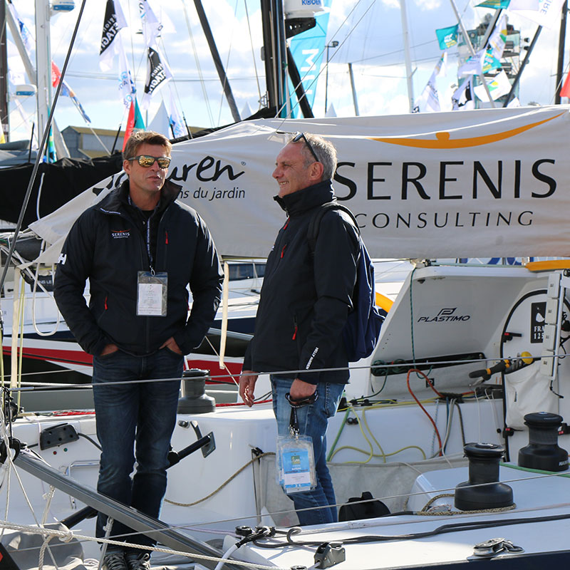 Jean et Marc sont sur la même longueur d’onde et se lient rapidement d’amitié. Le dirigeant de Serenis Consulting s’implique personnellement dans tous les grands moments du skipper. En 2014, il attend Jean Galfione en Guadeloupe à l’arrivée de la Route du Rhum. En 2018, il le soutient dans le dur choix de son abandon. En 2020, ils s’associent pour la construction d’un Class40 neuf.
